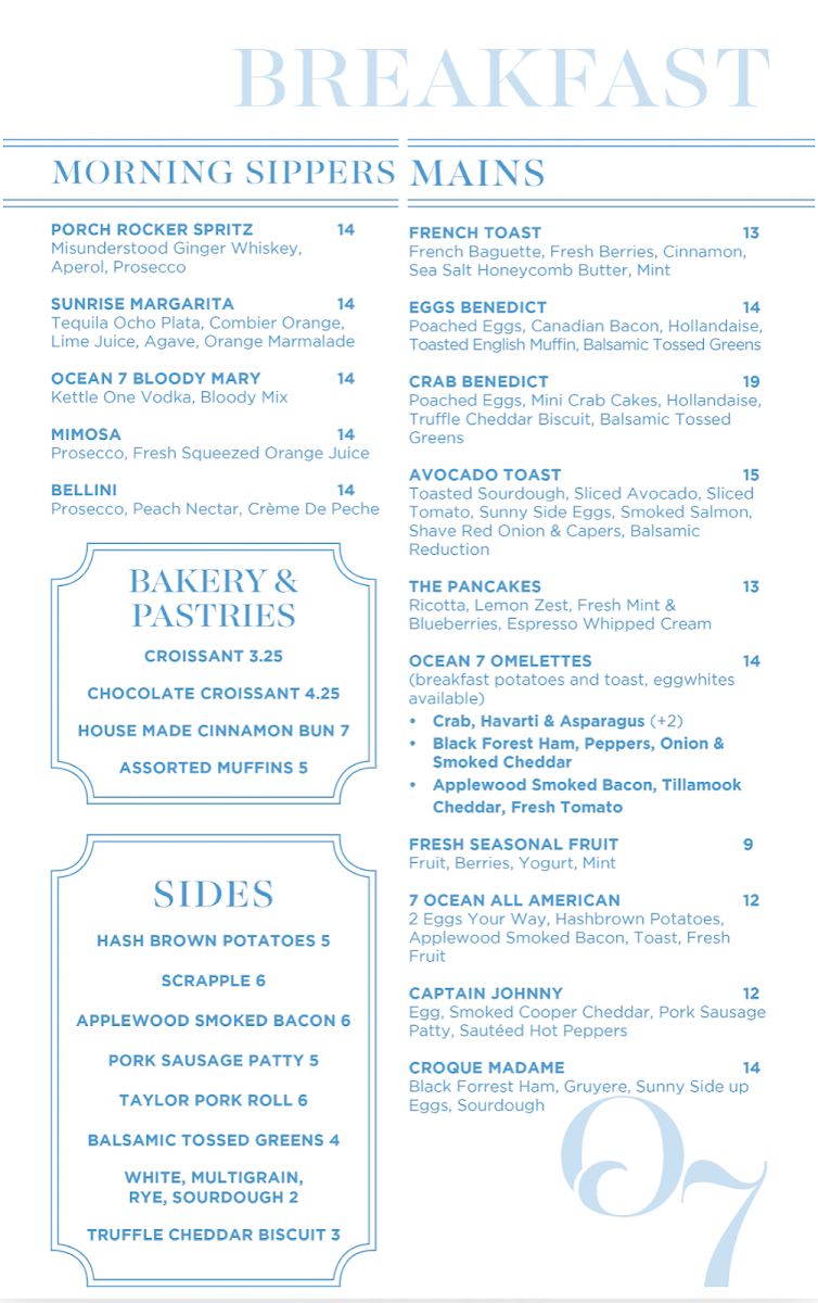 Ocean 7 Menu (Update 2025)